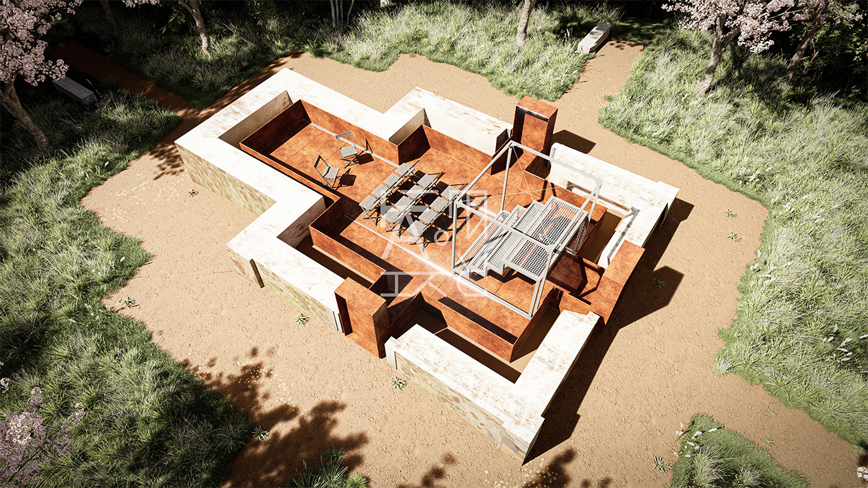 Nová vrstva vložená do interiéru kaplnky vytvára platformu pre jej širšie využitie. Konštrukcia minimálne zasahuje do pôvodného muriva a podlahy. Kladie dôraz na prezentáciu zakonzervovania a ochranu kaplnky. Oceľová roštová konštrukcia so zábradlím je odsadená po celom obvode. Takýmto spôsobom je znížené riziko poškodenia konzervácie návštevníkmi. Rovnako je zachovaný a možný vizuálny kontakt s pôvodnými časťami a výzdobou kaplnky. Odkazom na barokový sloh sú rozmery symetrickej konštrukcie. V miernom kontraste s nerovnosťou pôvodných stien sa symbolicky prepisuje pôvodný pôdorys s novým. Tento prepis podčiarkuje vznešenú myšlienku /Nova et Vetera/ predkov a zachováva tak kontinuitu pre ďalšie generácie, no rovnako tak nebráni novému prepisu.