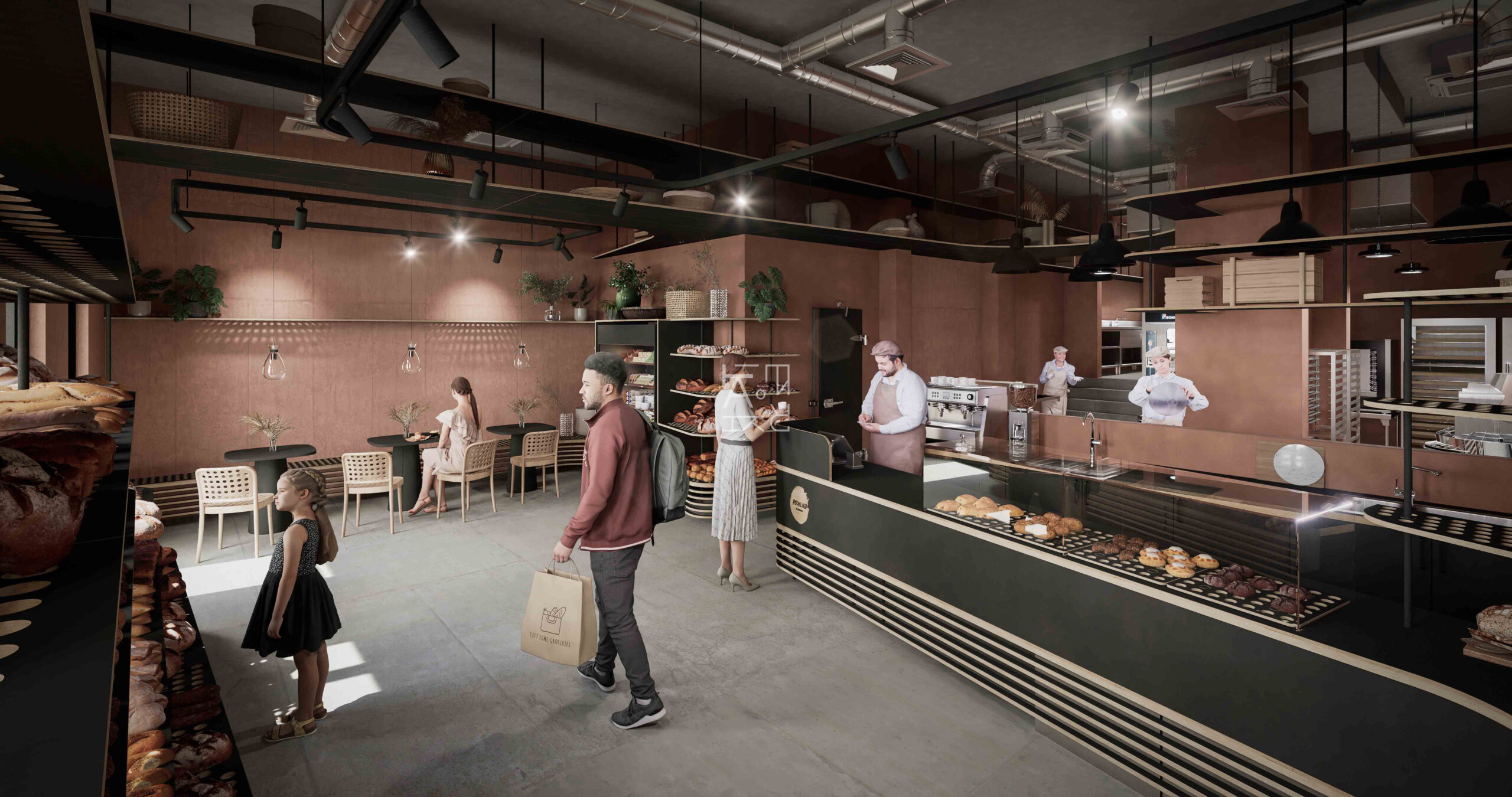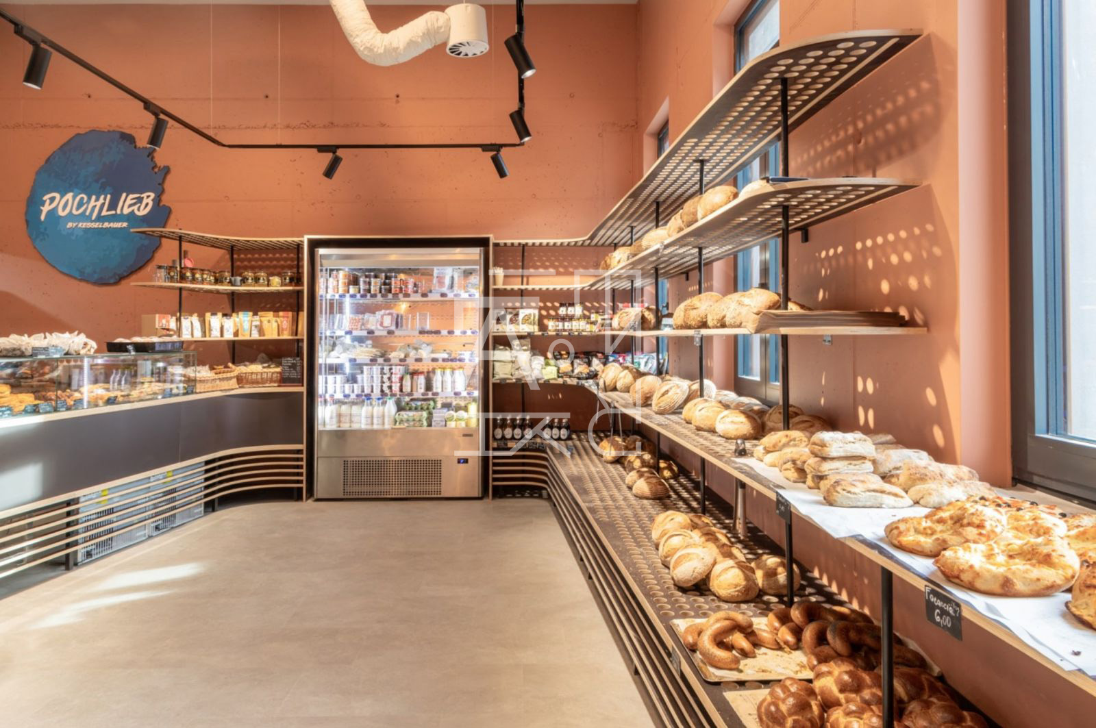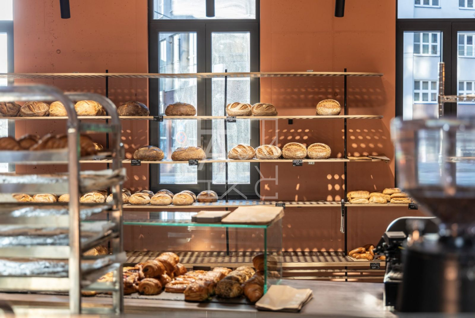 Prevádzka je z funkčného hľadiska rozdelená na technickú časť so zázemím a obchodnú časť s výkladom pre tovar a výrobky. Predajňa sa rozprestiera na dvoch výškových úrovniach. Návrh interiéru pekárne podľa architekta reflektoval pozíciu obchodného priestoru, ktorý bol orientovaný do rušnej ulice a vnútrobloku rezidenčného objektu. Koncept pekárne sa nesie v duchu „open space“, keď zákazník vidí remeselnú výrobu a kvalitu výrobkov môže otestovať priamo pri káve.