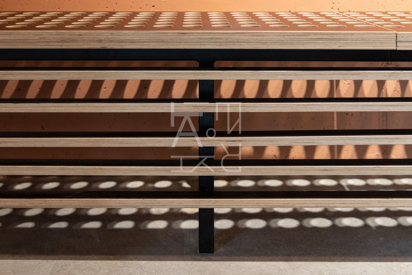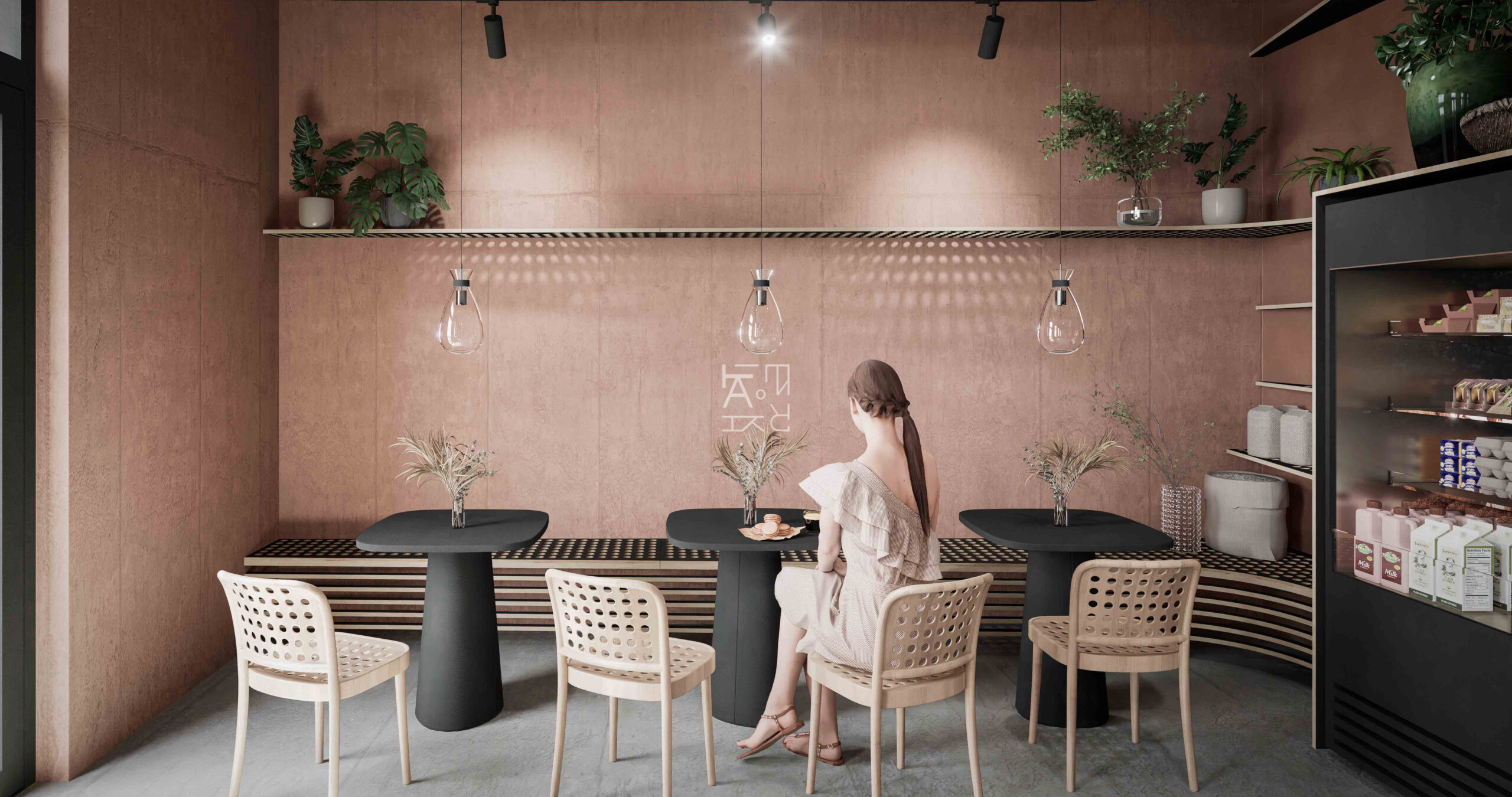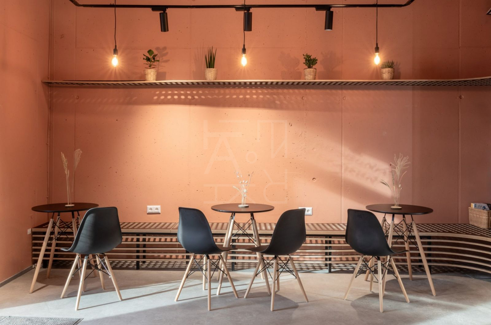 Za hlavnú myšlienku celého návrhu je dynamickú krivku, ktorá sa začína od samotného vstupu do pekárne a končí sa pri výklade do vnútrobloku. Jej súčasťou je sústava políc, regálov, predajného pultu a sedenia pre návštevníkov pekárne. Inšpiráciu sme čerpali zo spôsobu miesenia cesta, ktoré sa naťahuje a formuje pod rukami pekára.